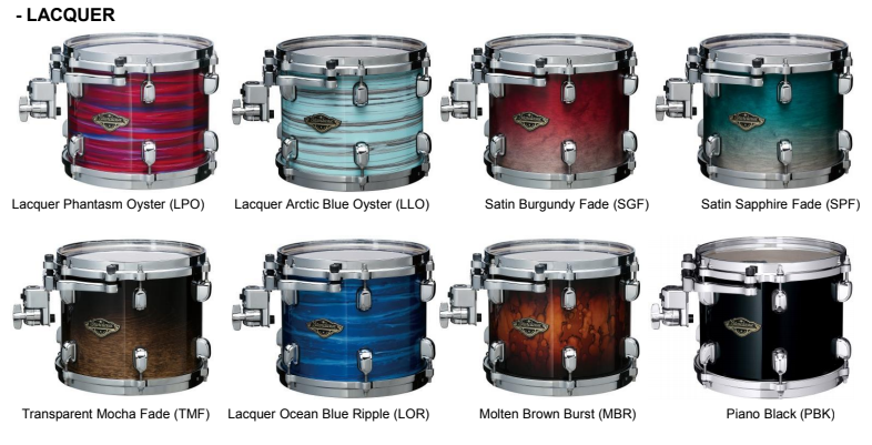 Все установки и отдельные барабаны доступны в лаковой отделке и обёртке Duracover.