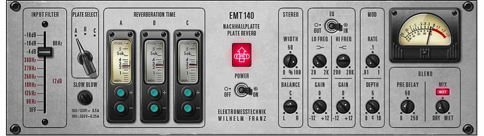 В зависимости от записываемого материала, немного ревера будет в тему. Начинать стоит с симуляции комнаты и обязательно малыми дозами. Качественная барабанная комната станет отличной стартовой точкой. Если комната, в которой происходила запись, была слишком «сухой», отправьте на ревер только оверхэды. Если треки с малым и бочкой слишком выбиваются, тогда отправьте на реверберацию все микрофоны. Чтобы сгладить резкость звучания, после ревера поставьте эквалайзер. Если эффект комнаты не очень подходит к песне, попробуйте использовать пластинчатый ревербератор только на малом. С этой задачей хорошо справится UAD EMT 140 Classic Plate Reverberator. Для компрессии общей шины с барабанами используйте любой ненавязчивый оптический компрессор, который будет только захватывать пики с минимальным уровнем компрессии. Вайб тут не менее важен, чем контроль динамики.
