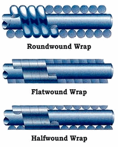 У таких струн обычную круглую обмотку шлифуют до практически гладкой поверхности (убирают до трети ее толщины). Звук получается более мягким, а струны издают гораздо меньше посторонних шумов. Эти своего рода компромиссный вариант между круглой и плоской обмоткой.
