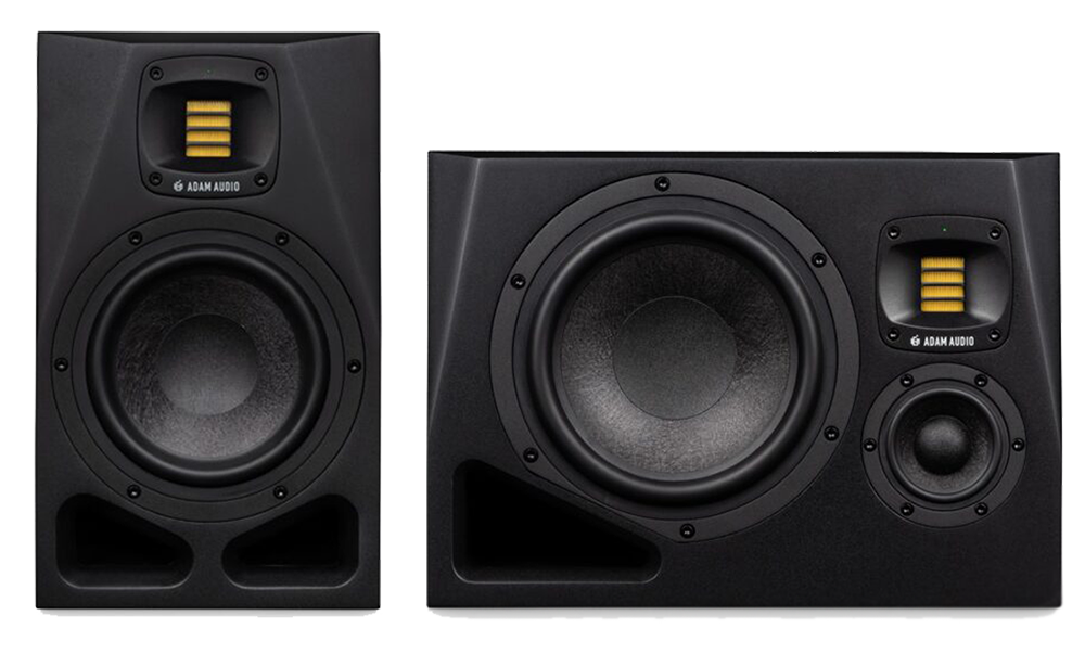 На фото: студийные мониторы A7V (2-полосный дизайн) и A8H (3-полосный дизайн) рядом.
