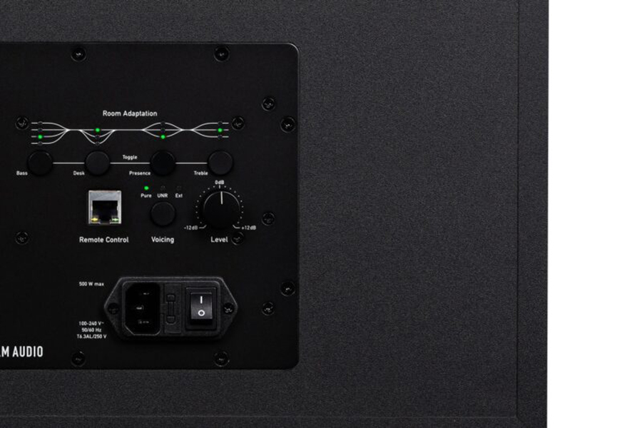 Опции адаптации к комнате на задней панели студийного монитора ADAM Audio A77H.