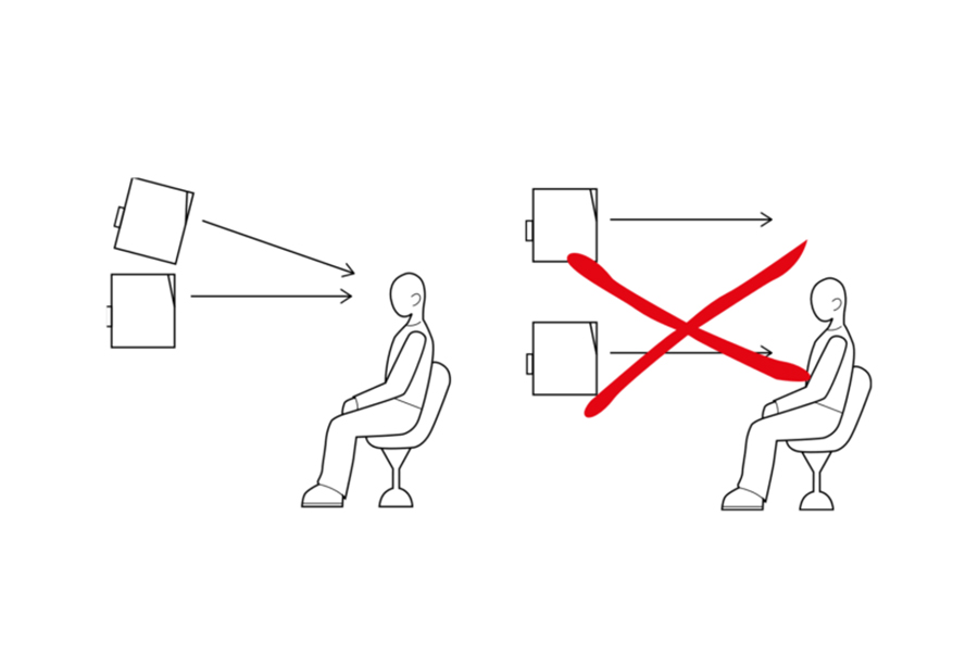 Два студийных монитора и позиция прослушивания в стереосистеме должны образовывать равносторонний треугольник.