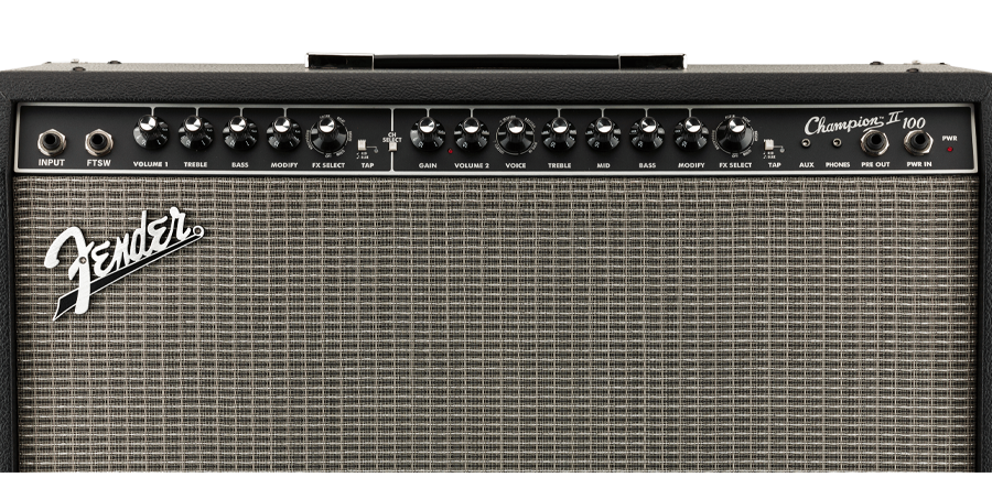 Fender Champion II 100 – комбоусилитель мощностью 100 Вт с двумя 12-дюймовыми динамиками. Модель обеспечивает громкий, четкий и насыщенный звук, что делает ее пригодной для репетиций и выступлений на сцене.
