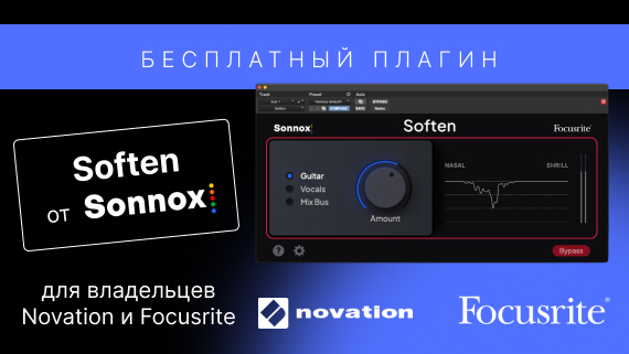 Пользователи, зарегистрировавшие оборудование Novation и Focusrite, могут бесплатно получить новый плагин Soften от Sonnox. Он уже добавлен в вашу учетную запись в разделе Included Software.