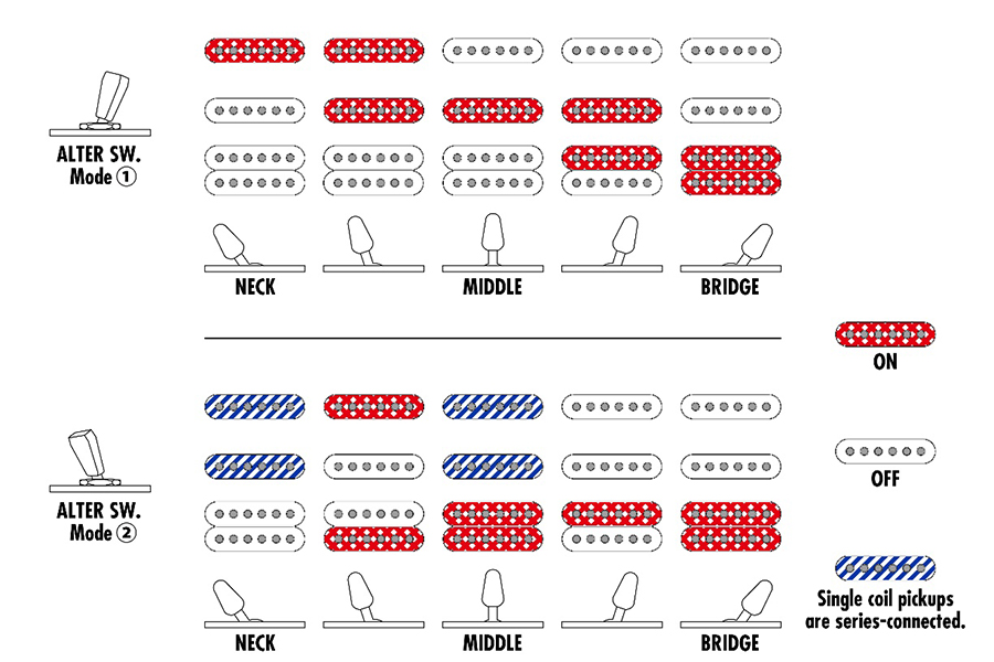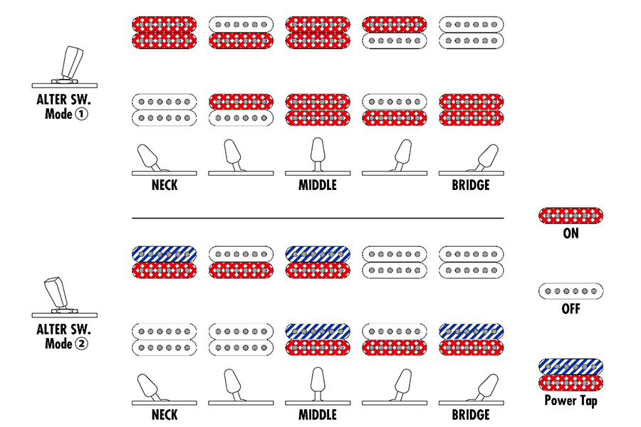 Dyna-MIX Switch – альтернативные конфигурации звукоснимателей, что увеличивает количество доступных тональных вариаций.