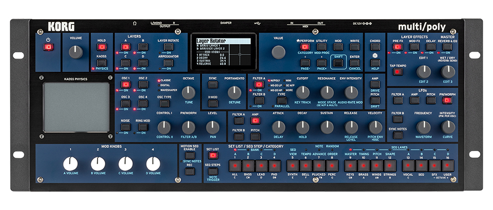 Вдохновленный легендарным KORG Mono/Poly, новый синтезатор multi/poly с аналоговым моделированием сочетает увлекательное аналоговое звучание с выдающейся цифровой мощностью и гибкостью. Уже сейчас он получил признание как один из лучших синтезаторов года.