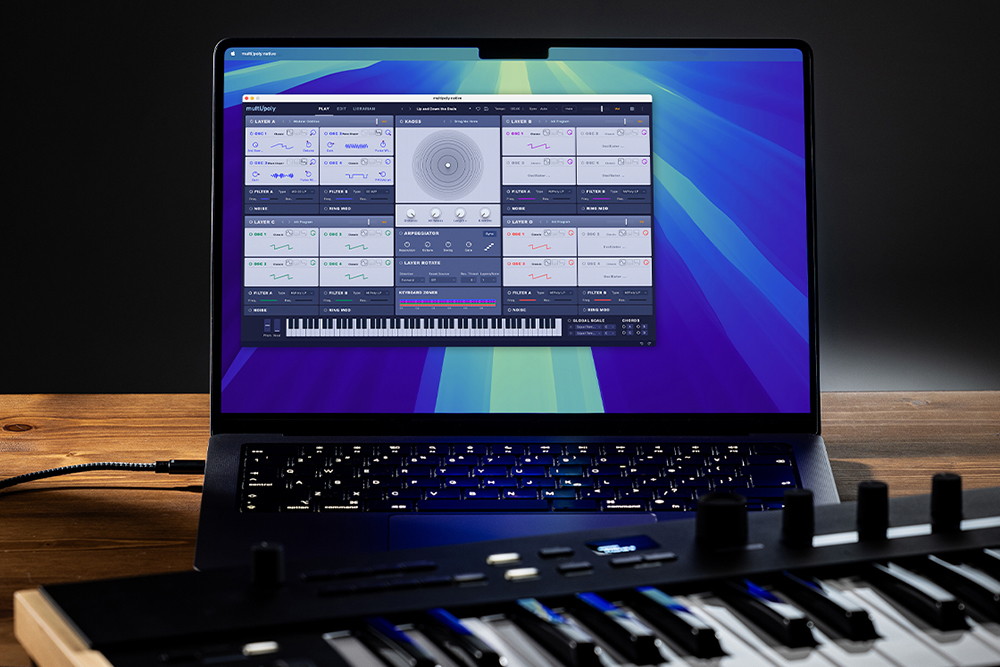 Работайте в DAW с multi/poly native, а затем используйте те же звуки на сцене с аппаратной версией multi/poly. Создайте звуки с помощью интуитивного интерфейса аппаратного синтезатора и обменивайтесь ими с коллегами, работающими на компьютере.