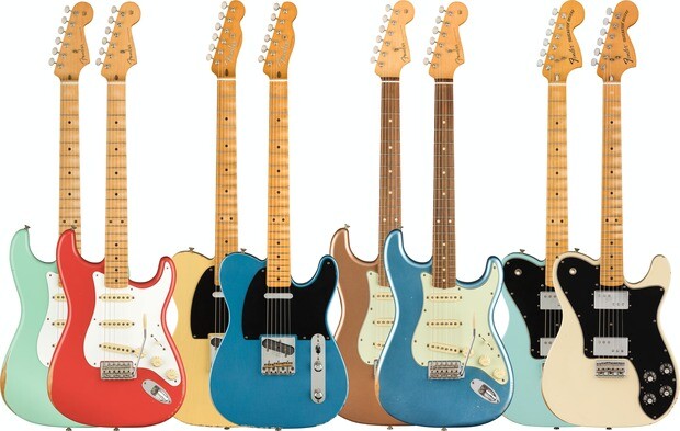 Что касается других характеристик, гитара получила ольховый корпус, кленовый гриф с радиусом '60S-С, звукосниматели Vintage Noiseless и пикгард из анодированного алюминия.