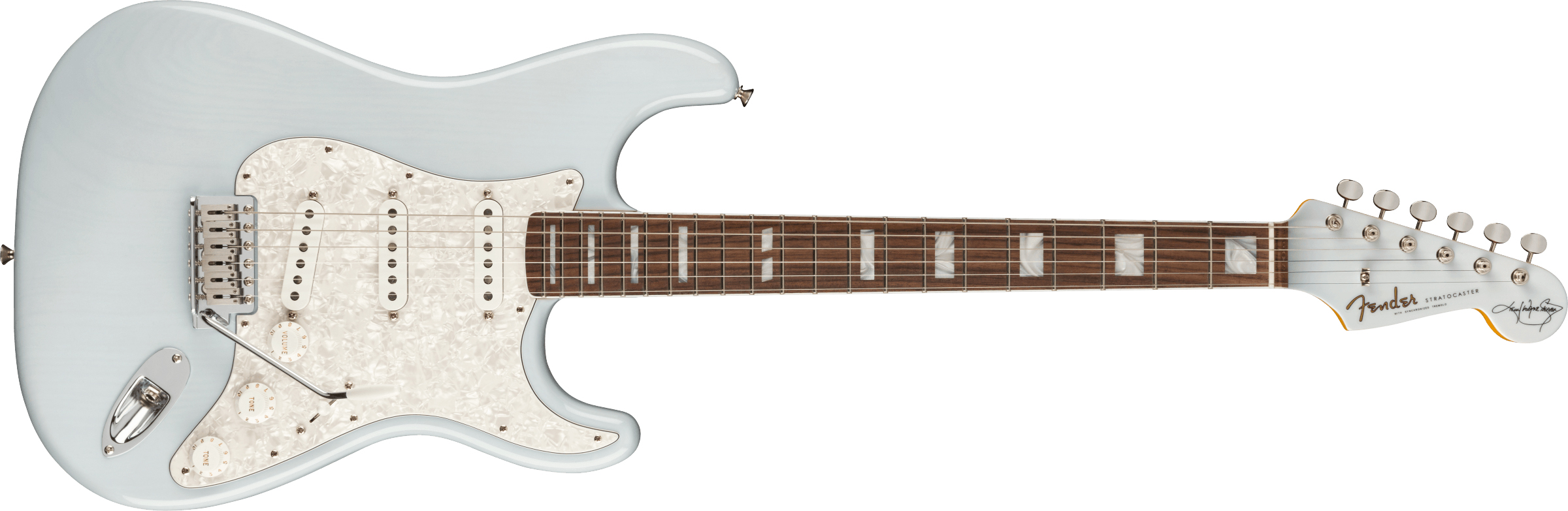 Обновленный Stratocaster имеет корпус из ясеня, кленовый гриф с C-образным профилем и палисандровой накладкой. Гитара имеет состаренное нитроцеллюлозное лаковое покрытие в цвете Sonic Blue.
