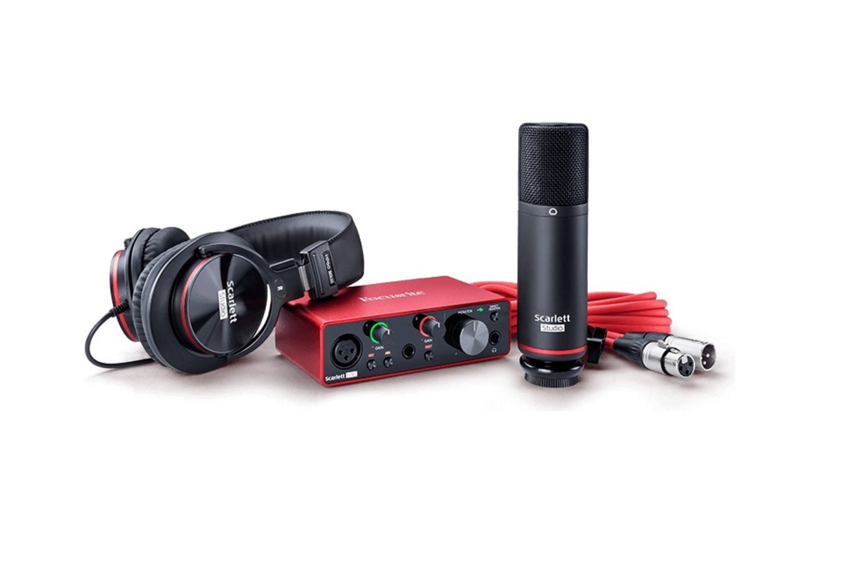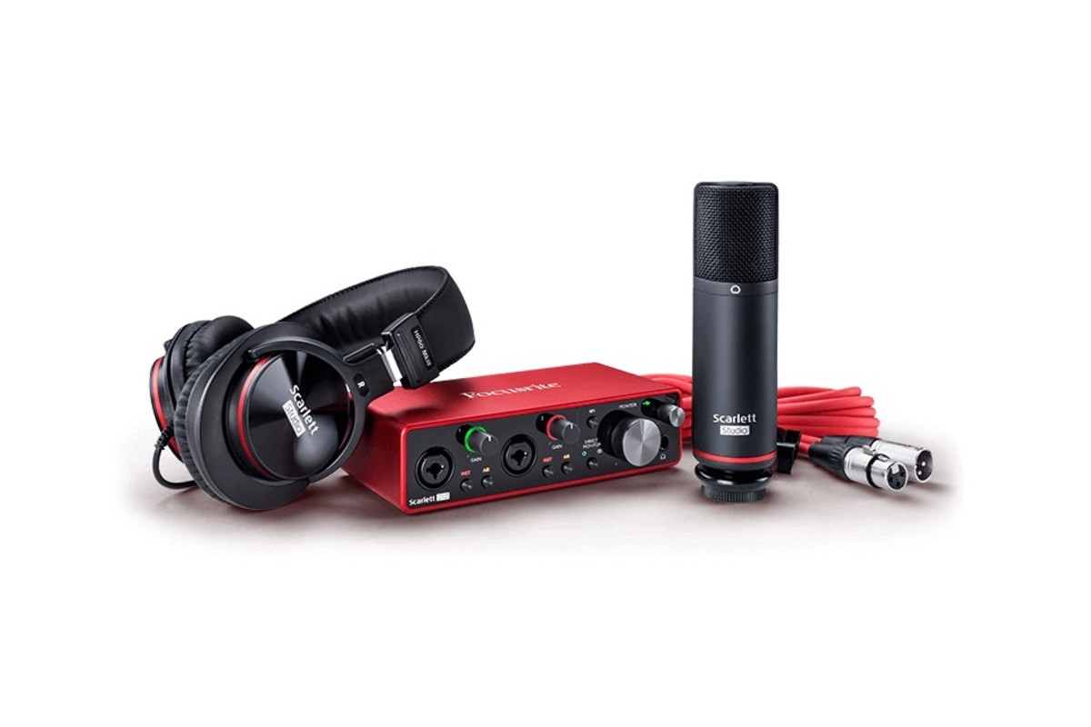 Начнем с комплектов от британской компании Focusrite, которая сделала себе имя в сфере производства аудиоинтерфейсов. Сейчас производитель использует во всей своей продукции микрофонные предусилители уже 3-го поколения, которые отличаются естественной передачей нюансов звука и функцией Air для воспроизведения Air-эффекта оригинального микрофонного предусилителя ISA.