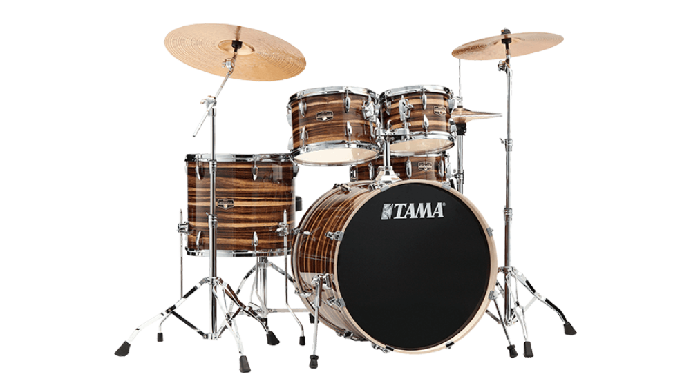 Все барабаны, включая томы, двойные бас-барабаны и малый барабан, изготовлены из 100% тополя, толщиной 8 мм и из 6 слоев. Тополь традиционно используется более 50 лет благодаря способности создавать теплый, полный звук с умеренной атакой, что делает установку универсальной для различных стилей игры.