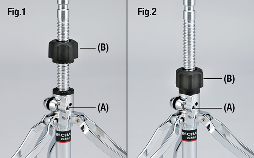 - Прикрутите фиксатор высоты (B) к верхней части нейлоновой втулки.