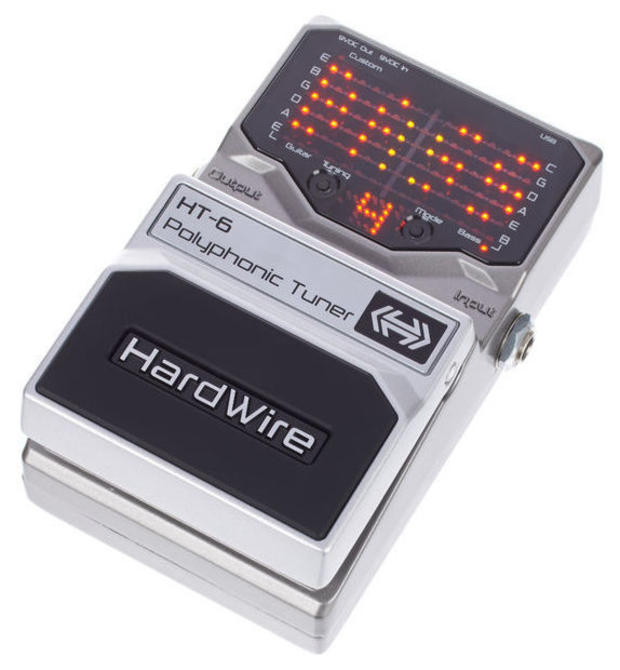 Наступним у списку знаходиться дуже футуристичний, але вельми спірний DIGITECH HARDWIRE HT-6 TUNER, який привертає увагу своїм hi-tech дизайном. Це поліфонічний тюнер, що для деяких гітаристів є важливим фактором. Особисто я вважаю поліфонічність марною функцією, адже хоча тюнер і показує налаштування всіх шести струн, ліва рука у вас всього одна, тому налаштовувати кожну струну ви будете по-черзі. Це виключно моя думка, і можливо занадто суб'єктивний погляд (ще й з басової дзвіниці). Ті, хто бажає посперечатися, запрошуються в коментарі або мої особисті повідомлення.