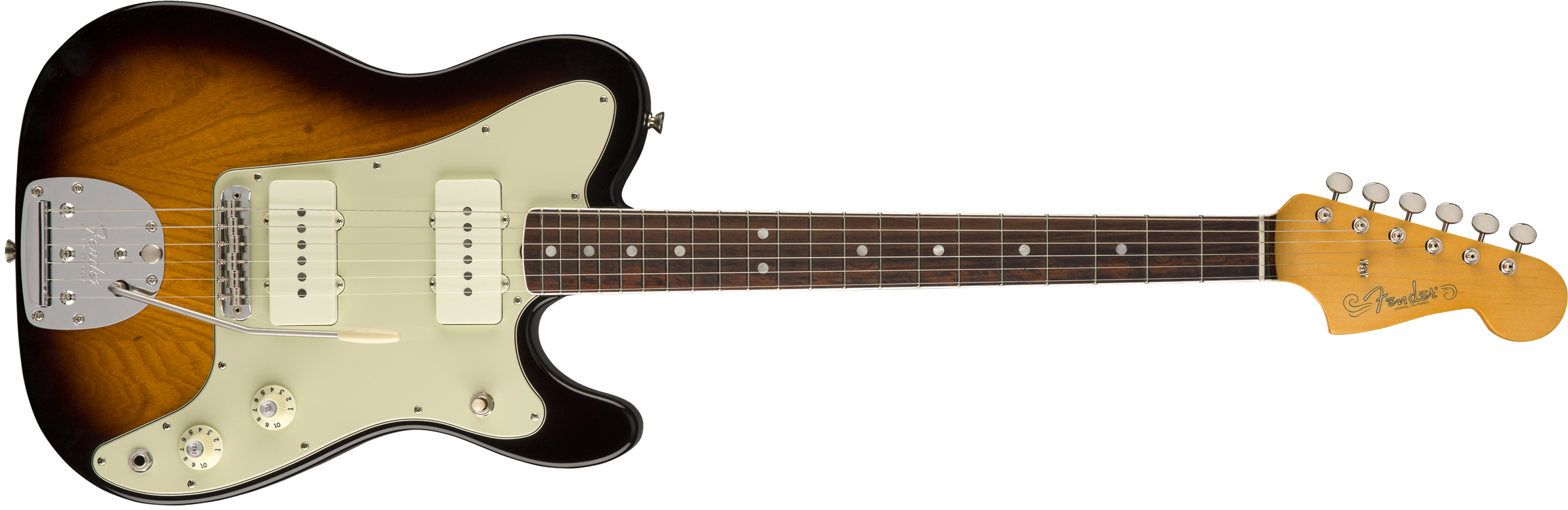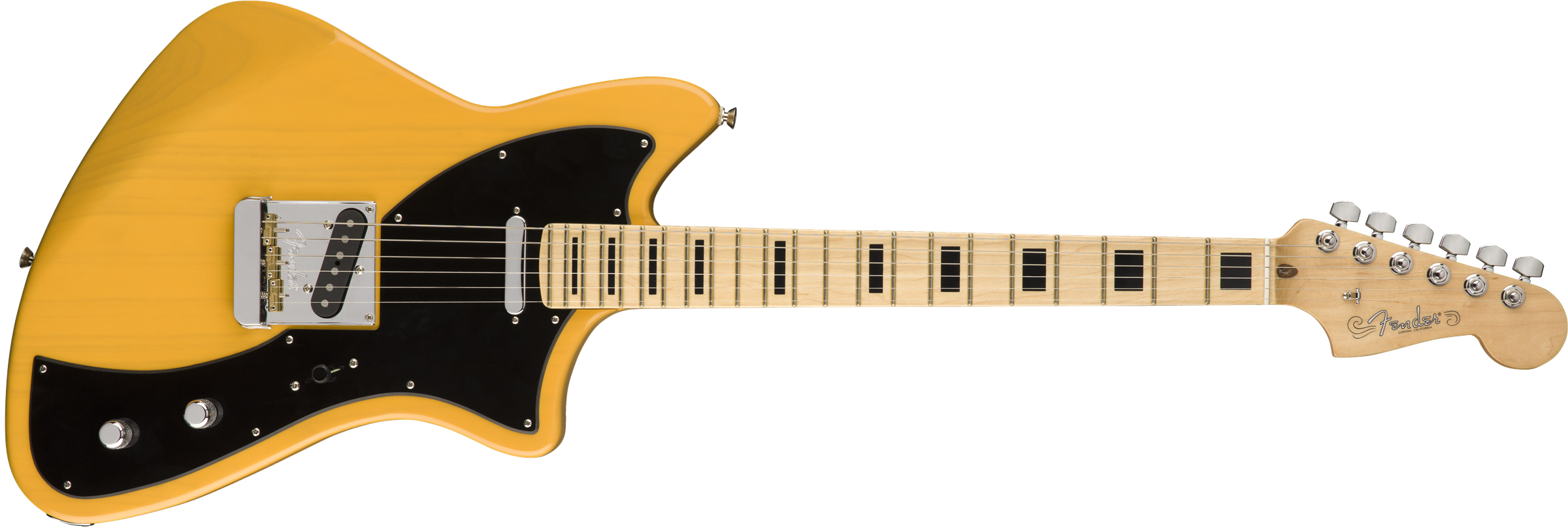 Елегантна, рухлива та збалансована - це Meteora, нова лімітована оффсетна модель, що несе в собі традиції Fender у створенні дизайну, за який можна потрапити під арешт! Звучання динамічне і дуже пасує обрисам гітари - вона жадає ревіти на сцені, і робить це завдяки двом Custom Shop Tele звукознімачам, а саме Custom Shop vintage-style Tele (bridge) та Custom Shop Twisted Tele (neck)! Meteora поєднує міць та грацію, і безсумнівно є дитям Fender! Гриф від American Professional Jazzmaster з профілем від '65 Jazzmaster та з радіусом накладки в 9.5" й оздоблений блочною інкрустацією додає довершеності та незрівнянного комфорту при грі. Ясенева дека, лакове покриття, кастомний одношаровий пікгард та компенсовані латунні сідла - Meteora стоїть однією ногою в минулому Fender споглядаючи у майбутнє, й готова випробовувати ліміт вашої креативності!