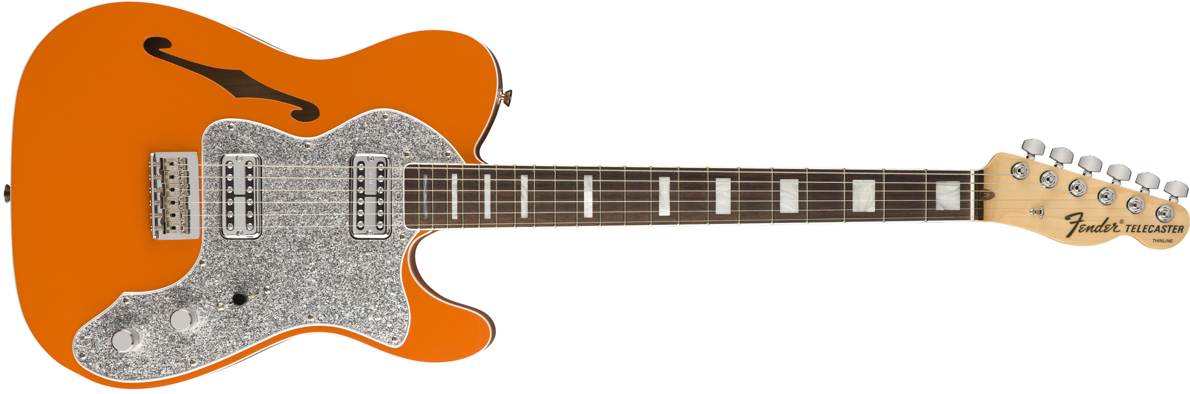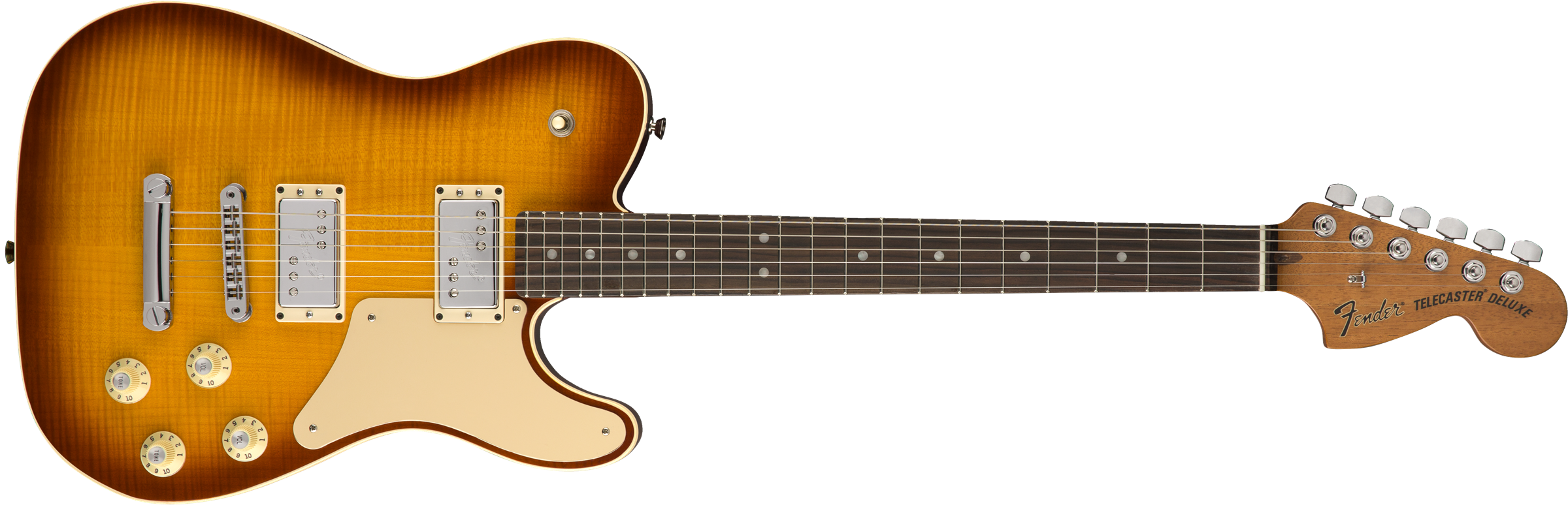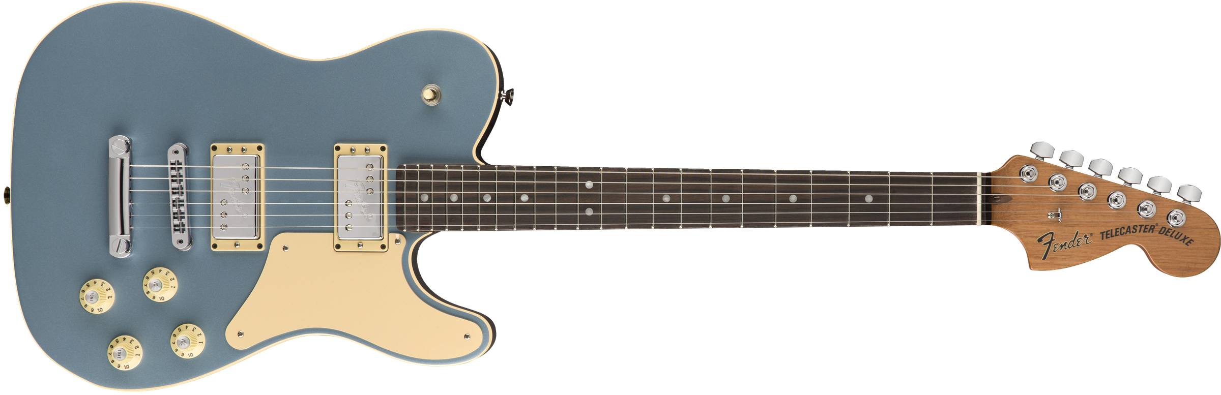 З'явись на сцені з елегантним Tele Thinline Super Deluxe! Відчутний вплив західної культури та класичний саунд робить цей лімітований інструмент сирим та вишуканим одночасно! Як? Пара насичених та тонально багатих звукознімачів TV Jones® Classic та вже давно класичний напівпорожній корпус приголомшливого кольору із сріблястим пікгардом та подвійним кантом, усе це змушує олд-скул сяяти по-новому! Під ручкою тону ховається bass-cut перемикач, що дає ще більше контролю над гнучкістю голосу цього інструмента. Limited-edition Tele Thinline Super Deluxe - гітара для сміливих та впевнених музикантів, що хочуть додати стилю та блиску до своєї колекції!