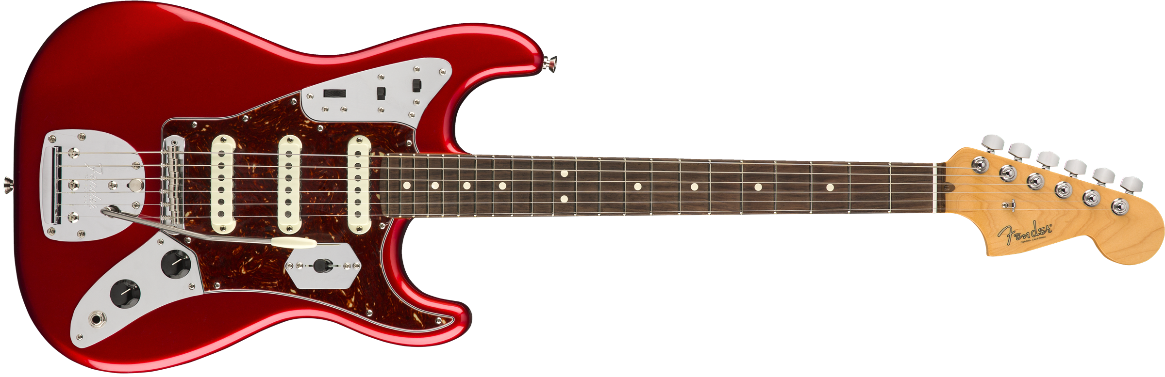 Сподіваюся що хіпстер який зажадає цю гітару вже народився! Розкішний і лискучий із хромовим оздобленням та витонченими контурами цей Limited Edition Jaguar Strat змусить глядачів порозкривати роти, щойно промені софітів осяють вас на сцені! Елегантна вільхова дека Стратокастера прикрашена хромовими панелями і черепаховим пікгардом від Ягуару - безумовно, цей блискучий стиль для найсміливіших гітаристів, з саундом що вражає наповал! Fender взяли не тільки візуальні атрибути від Ягуару, вони взяли його гнучку комутаційну схему та сумістили її із електронікою Страту, аби створити унікальну та потужну гібридну систему! Традиційний 5-ти позиційний перемикач поєднано із регулятором тону для бриджевого звукознімача, в той час як два верхні перемикачі дозволяють в третій позиції обирати або середній звукознімач, або усі три одночасно для потужного вибуху тону! Відкалібрований набір вінтажних синглів Ягуару звучить автентично й передає атмосферу 60х. Гриф з мензурою в 25.5", профілем Deep C, радіусом палісандрової накладки в 9.5", нульовий поріжок з кістки, бридж від Мустангу - усе це робить гру максимально комфортною та надійною. Зухвалий та витончений одночасно, Jaguar Strat був створений з єдиною метою - принести неймовірний стиль до сцени!