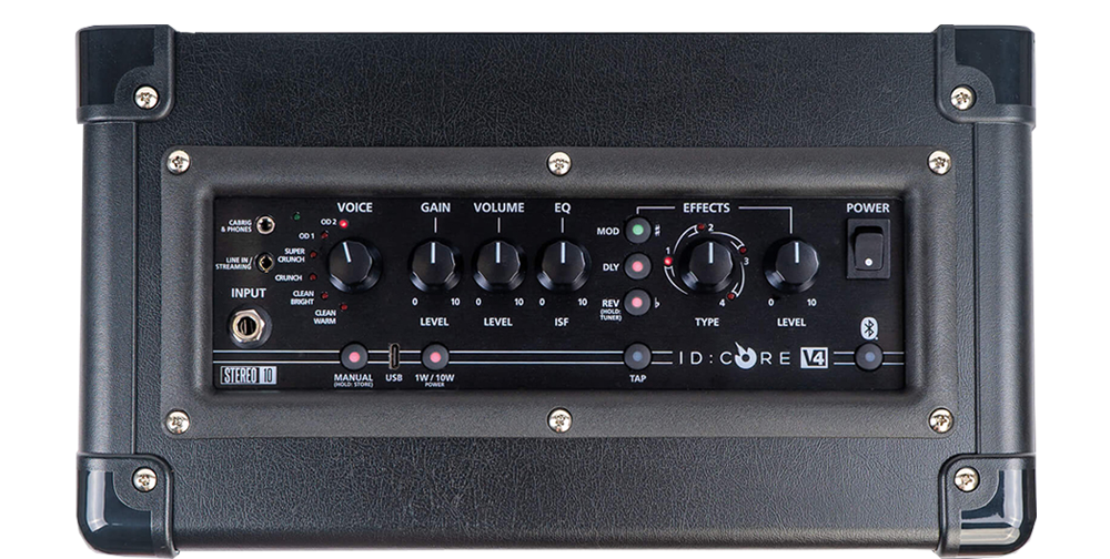 Blackstar ID:Core V4 Stereo 10 Bluetooth є справжнім технологічним проривом. З потужністю 10 Вт (з можливістю зниження до 1 Вт), двома 3-дюймовими динаміками та Bluetooth-модулем, він пропонує 6 видів звучання та 12 ефектів.