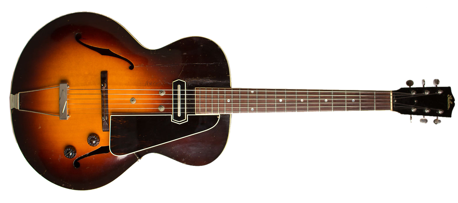 Першою успішною моделлю гітари зі звукознімачем була створена для відомого джазмена Чарлі Крістіана Gibson ES-150, яка з'явилася в 1936 році. Букви ES позначали Electric Spanish, і по суті, це була порожниста акустична гітара-арктоп з доданим звукознімачем. Крістіан увічнив цей інструмент на пластинках, що зробили надзвичайний культурний вплив, зігравши разом з Бенні Ґудменом і Лестером Янгом. Інший знаковий гітарист тієї епохи, Бак Клейтон, також грав на ES-150, який започаткував мистецтво соло на електрогітарі одиночними нотами.