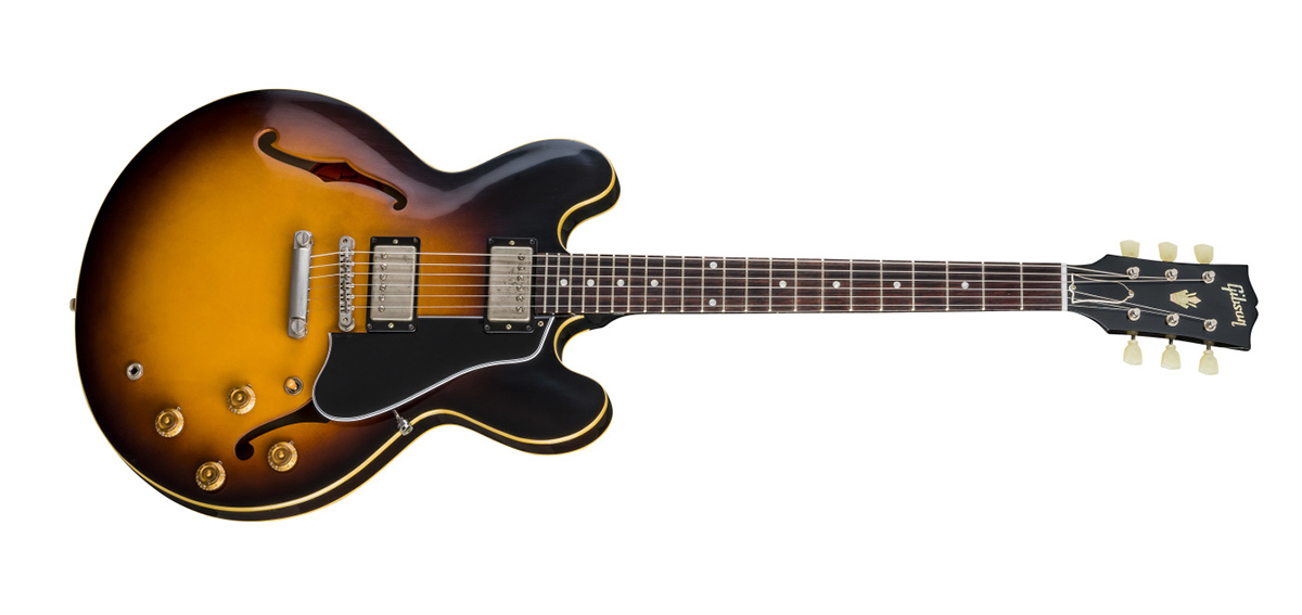 У тому ж році Gibson асиметрично відповіли, зробивши несподіваний крок у сторону. Модель ES-335 стала поєднанням елементів акустичних арктопів і електрогітар з цільним корпусом. По центру широкого та тонкого порожнистого корпусу всередині проходив цілісний брус, який назвали sustain block, а гриф, бридж і звукознімачі кріпилися саме до нього. У порожнистих боковинах були прорізані ефи за формою скрипкових. Така конструкція корпусу дозволяла різко зменшити фідбек і робила звук більш м'яким і глибоким у порівнянні з Les Paul. Ця гітара відразу припала до смаку джазовим музикантам і блюзменам, але й рок-н-рол на ній віджарювали добряче. Можна сказати, що ES-335 потрапила в ціль і навіть перевершила очікування своїх творців. Цікаво, що той самий прототип гітари, який Лес Пол пропонував Gibson в 40-х, мав таку ж саму концепцію з сустейн-блоком, але тоді її потенціал не змогли зрозуміти.