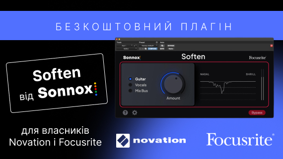 Користувачі, які зареєстрували обладнання Novation і Focusrite можуть безкоштовно отримати новий плагін Soften від Sonnox. Його вже додано до вашого облікового запису в розділі Included Software.
