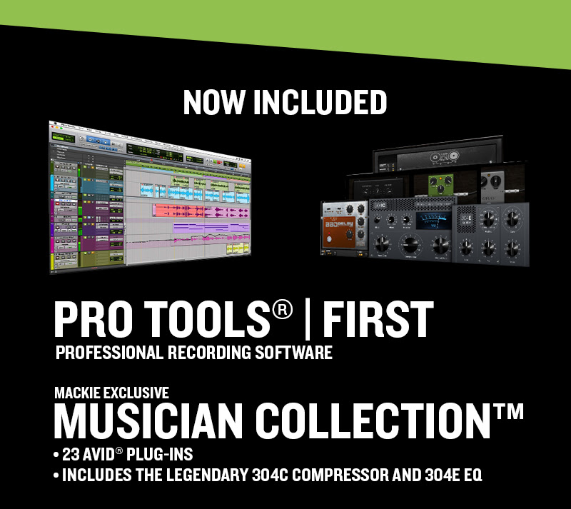 На додаток до потужних плагінів Pro Tools | First, ви також отримаєте ексклюзивну колекцію Mackie Musician Collection з 23 фантастичними плагінами: