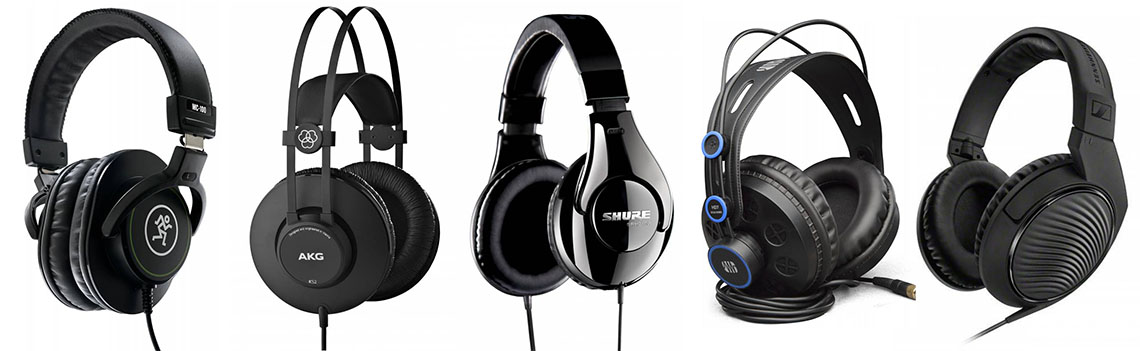 MACKIE MC-100, AKG K52, SHURE SRH240, PRESONUS HD7, SENNHEISER HD 200 PRO – топ варіанти за свої кошти для початківців. Кожен має своє звучання та особливості, але також, кожен краще підходить для своїх задач.