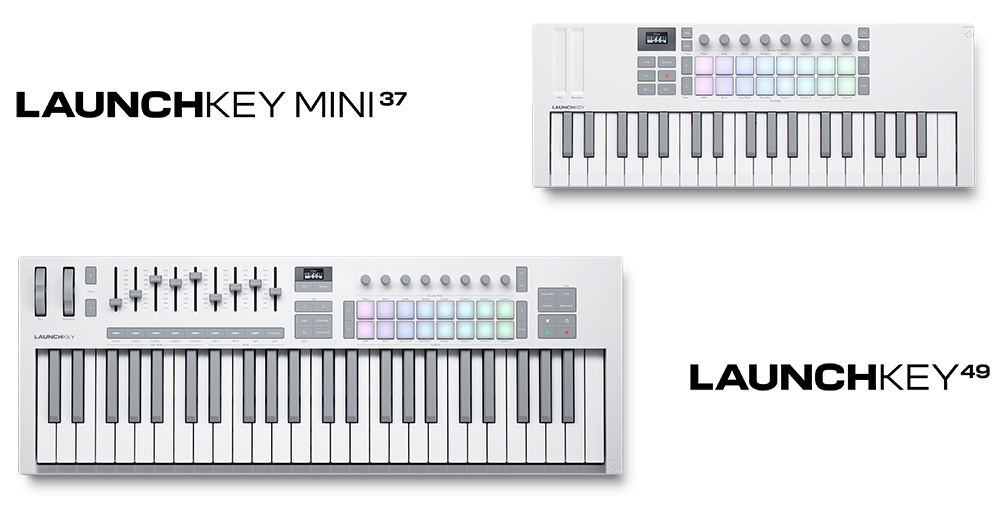 Launchkey 49 White та Launchkey Mini 37 White – це нові версії потужних MIDI-контролерів у стильному білому кольорі: перший із напівзваженою клавіатурою waterfall-типу на 49 клавіш, другий – компактніший, із 37 мініклавішами. Обидва контролери мають 16 динамічних педів для запуску семплів і гри на ударних, вісім нескінченних енкодерів, вбудований OLED-дисплей, а також підтримують режими акордів, гами та арпеджіатор. Вони забезпечують гнучке керування DAW, глибоку інтеграцію з Ableton Live й чудово підходять як для студійної роботи, так і для живих виступів – незалежно від того, потрібен компактний варіант чи інструмент із ширшим діапазоном.