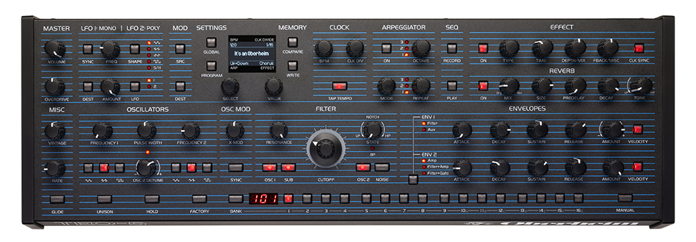 TEO-5 оснащений справжніми аналоговими генераторами та фільтром SEM – класичним багатомодовим фільтром Oberheim, який дає змогу створювати звучання, що стали основою десятиліть музики. Додаткові можливості, включно з лінійною та наскрізною FM-модуляцією, а також сучасними ефектами, відкривають нові горизонти для звукових експериментів.